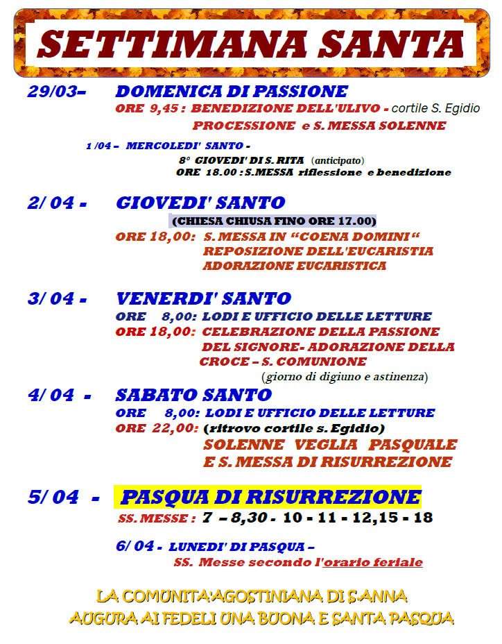 Pubblichiamo il calendario delle celebrazioni pasquali.