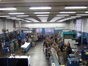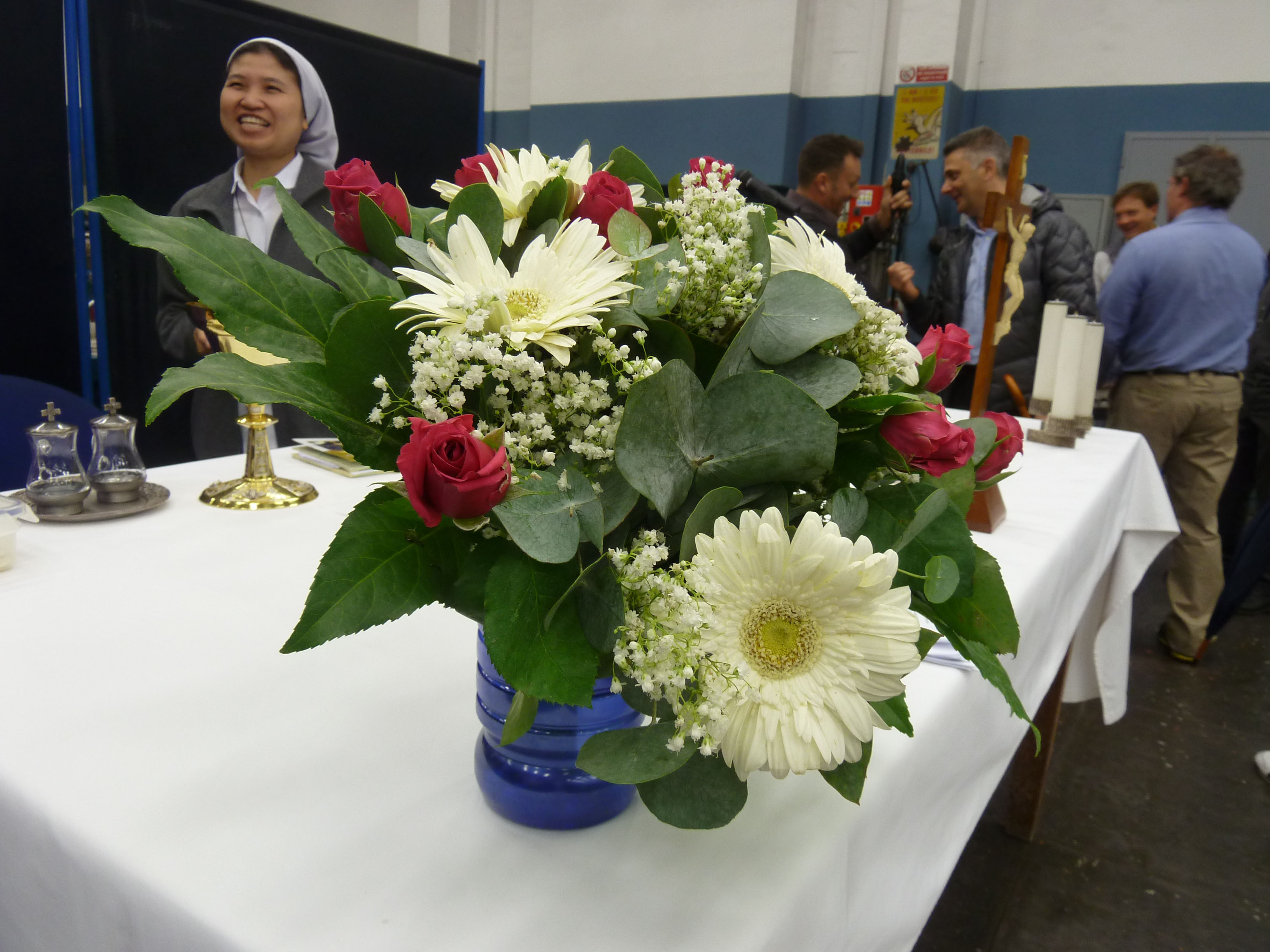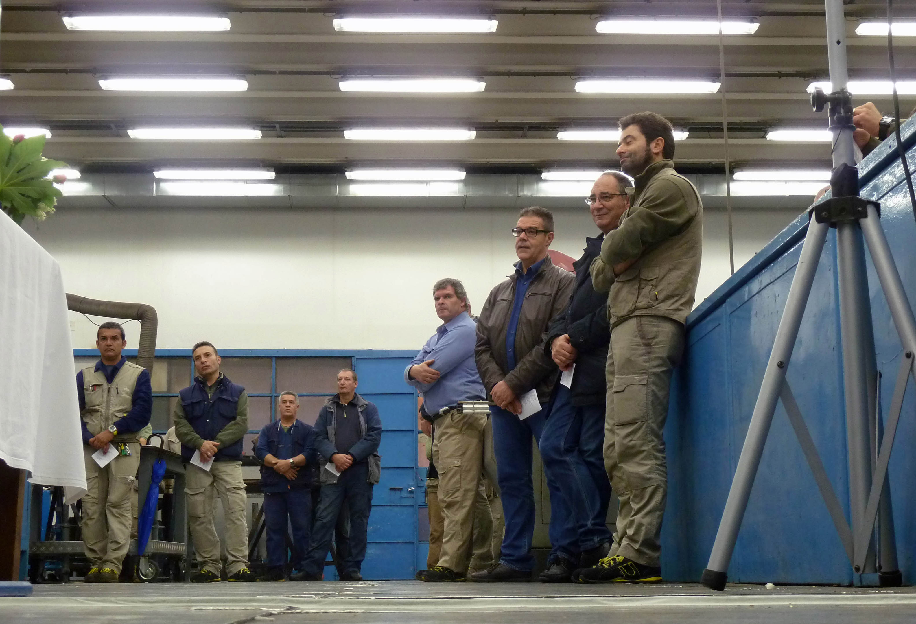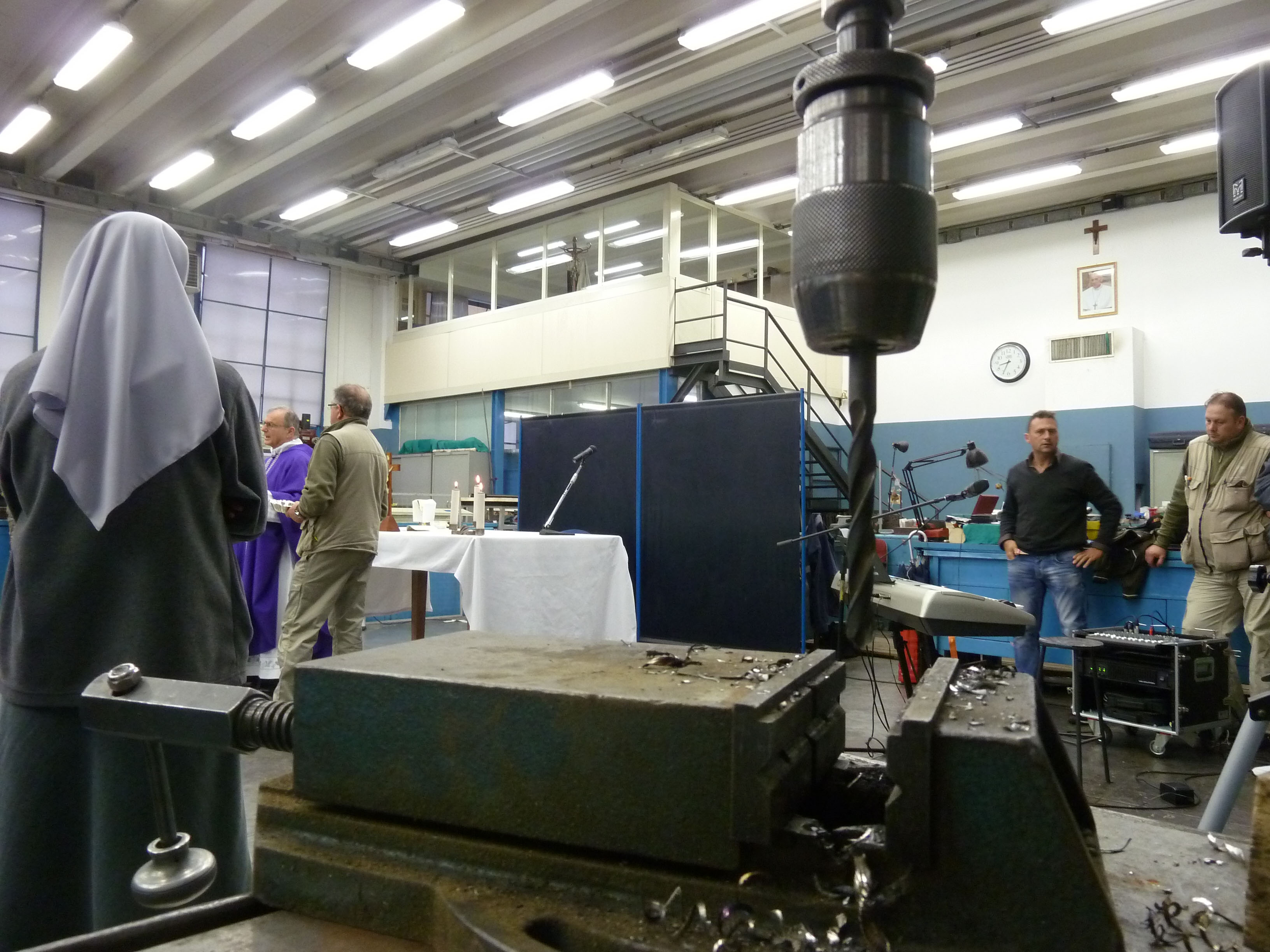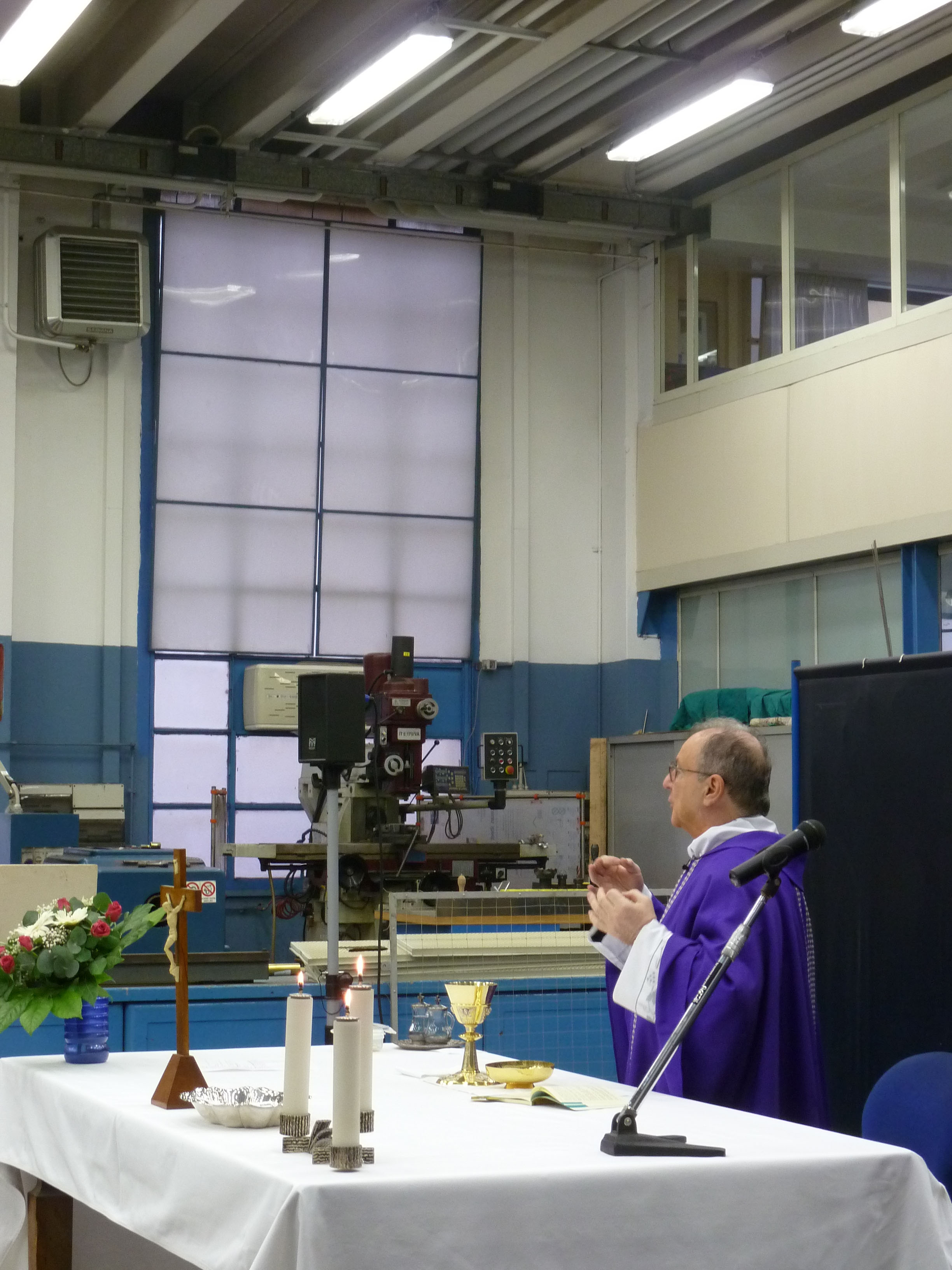 Venerdì 7 novembre 2014, alle ore 8 tutti gli operai e i responsabili della zona industriale del Vaticano si sono ritrovati nel grande magazzino dei meccanici per partecipare alla Santa Messa del primo venerdì del mese. La celebrazione, presieduta dal Parroco padre Bruno Silvestrini, è stata preceduta dalla prova dei canti, la preparazione della mensa e la compilazione della lista delle persone care defunte. Al termine dell’omelia Padre Bruno ha letto i nomi dei genitori, parenti, amici e colleghi defunti. Un particolare ricordo è stato innalzato al Signore per tutti le persone che hanno servito e amato la Città del Vaticano.