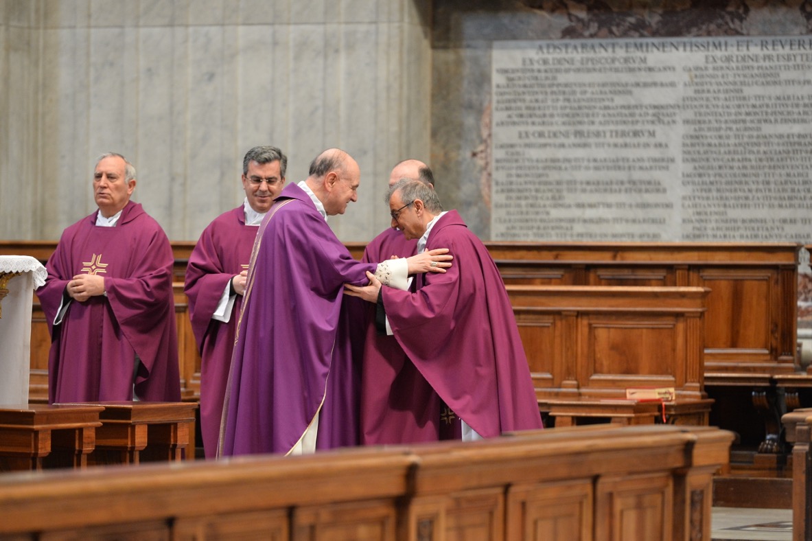 Il 23 marzo, mercoledì Santo, alle ore 8.00, presso l’altare della Cattedra nella Basilica Papale di San Pietro in Vaticano, il Cardinale Angelo Comastri ha invitato tutti i dipendenti della Città del Vaticano per la “Comunione Pasquale”. Alla celebrazione era invitato anche il Parroco della Pontificia Parrocchia di Sant’Anna, Padre Bruno Silvestrini. Al segno della Pace e al termine della Celebrazione eucaristica, il Cardinale ha salutato i Concelebranti e una rappresentanza di dipendenti. Alla celebrazione, oltre ad un folto numero di sacerdoti impegnati nella pastorale a servizio della Città del Vaticano, hanno partecipato gli Arcivescovi S. Ecc. Mons. Vittorio Lanzani, S. Ecc. Mons. Oscar Rizzato e S. Ecc. Mons. Giorgio Corbellini.