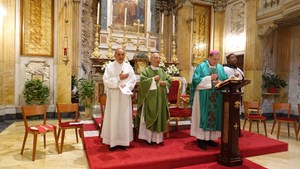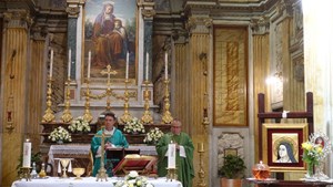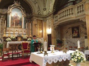 S. Ecc.za Rev.ma Mons Alberto Bochatey o.s.a., Ausilare di La Plata (Argentina), appena atterrato a Fiumicino si è diretto in Sant’Anna con una folta delegazione di dirigenti della Sanità della Città di Buenos Aires, per presiedere la Celebrazione Eucaristica delle ore 11. Ha concelebrato Mons. Piero Amenta, prelato uditore del tribunale della Rota Romana.