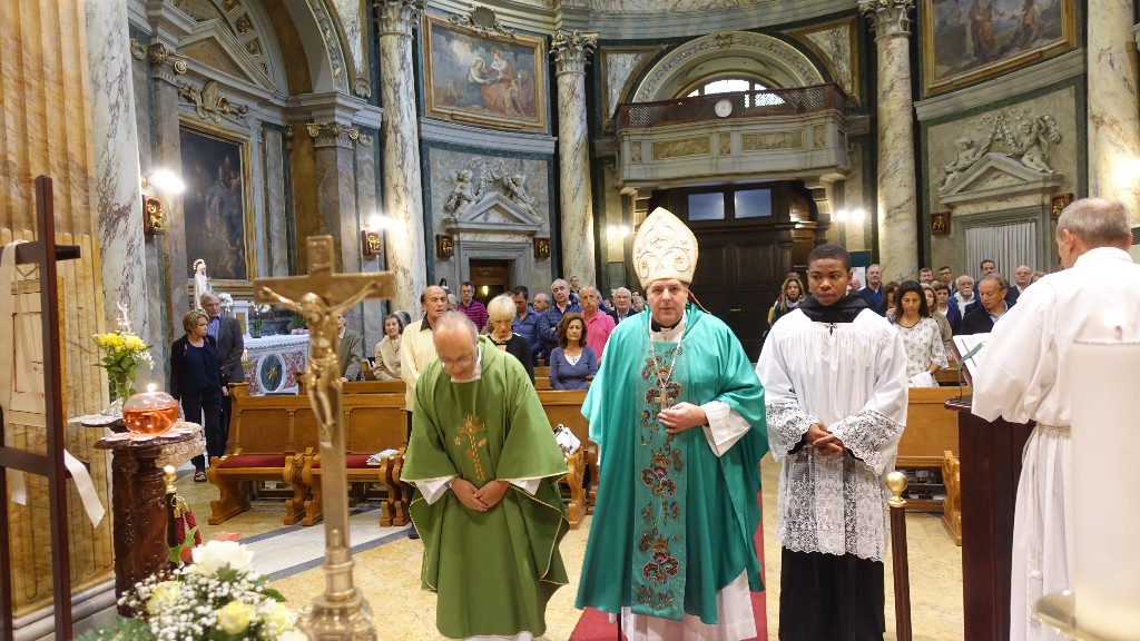 Dopo il caloroso discorso di benvenuto rivoltogli dal Parroco P. Bruno Silvestrini, il Presule ha ringraziato i suoi confratelli in Vaticano per l’accoglienza riservata.