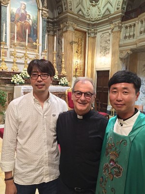 Nel pomeriggio alle ore 15, P. Mathew Cho Woo-Hyeong o.s.a., della Delegazione Koreana, ha celebrato la Santa messa per i fedeli coreani accompagnati dal confratello Salesio Lee Ki-hoon .