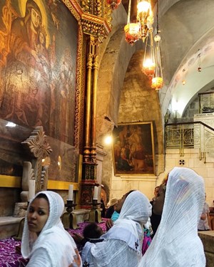 La sveglia di questo quarto giorno in terra santa è stata molto mattiniera. Da porta Damasco in 10 minuti siamo arrivati nella basilica del santo sepolcro per celebrare la messa delle ore 6. Ha presieduto padre Stefano nell'angusta tomba della resurrezione. Abbiamo ammirato la pulizia dei marmi eseguita del restauro in corso. Per tutto il tempo della permanenza in quel luogo tanto importante per la nostra fede abbiamo vissuto una meravigliosa emozione. Alcuni fedeli hanno partecipato nella piccola cappella detta "dell'angelo". Prima di lasciare quel luogo santo abbiamo baciato la lastra di marmo dove il Signore è risorto.