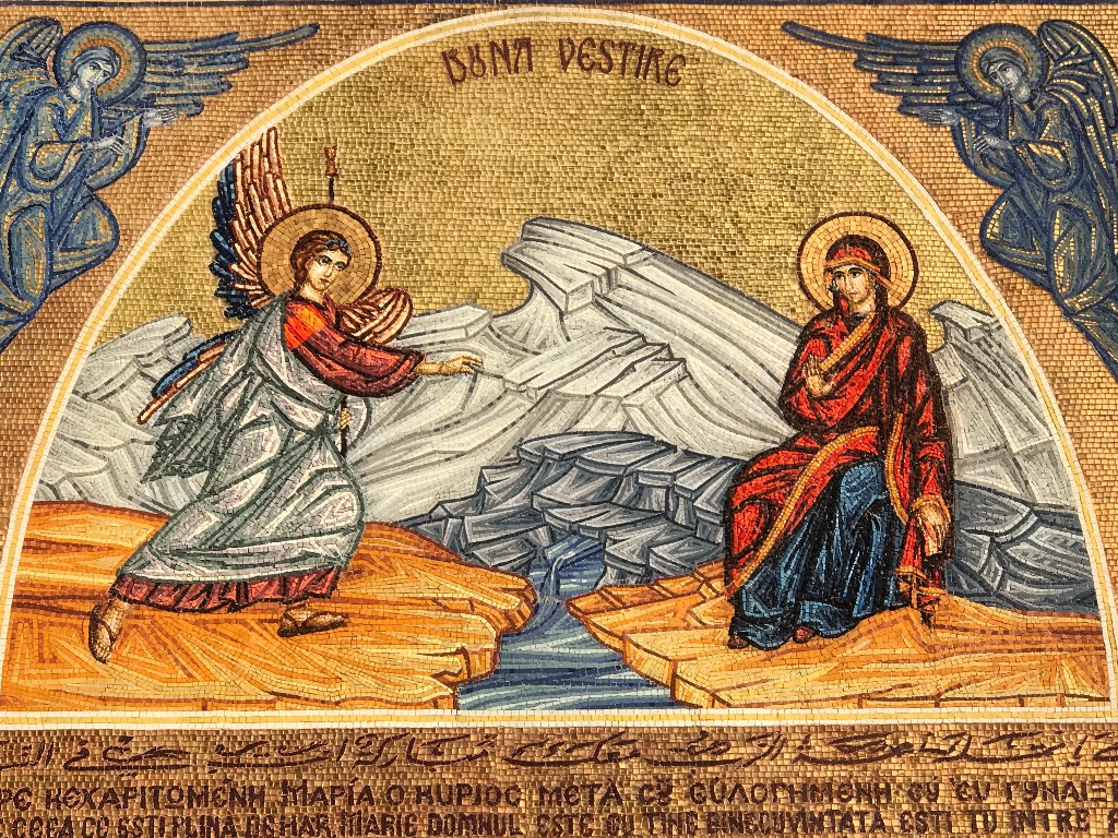Senza perdere un minuto di tempo, ci siamo recati nella città alta di Nazaret per visitare la fonte dalla quale la vergine Maria attingeva acqua e, secondo una tradizione antica, lì ebbe l'annuncio dell'angelo. Siamo quindi saliti poco avanti per giungere alla chiesa ortodossa dell'annunciazione e, trovandola chiusa a causa di una celebrazione, abbiamo potuto solo guardare le bellissime icone che si trovano nell'atrio della chiesa.