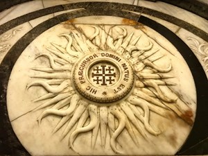 La giornata è iniziata alle 5,30. Alle 6.00 siamo partiti per andare a celebrare la messa al santo sepolcro e precisamente sull'altare latino del Golgota. Divieto assoluto di presentarci con stola e camice all'altare ortodosso sito a due metri. Gli ortodossi potrebbero metterci le mani addosso. Ho presieduto nel luogo in cui Dio in Cristo ci ha mostrato il suo immenso amore.