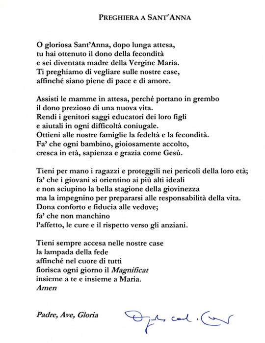 Nuova preghiera a Sant'Anna del card. Comastri