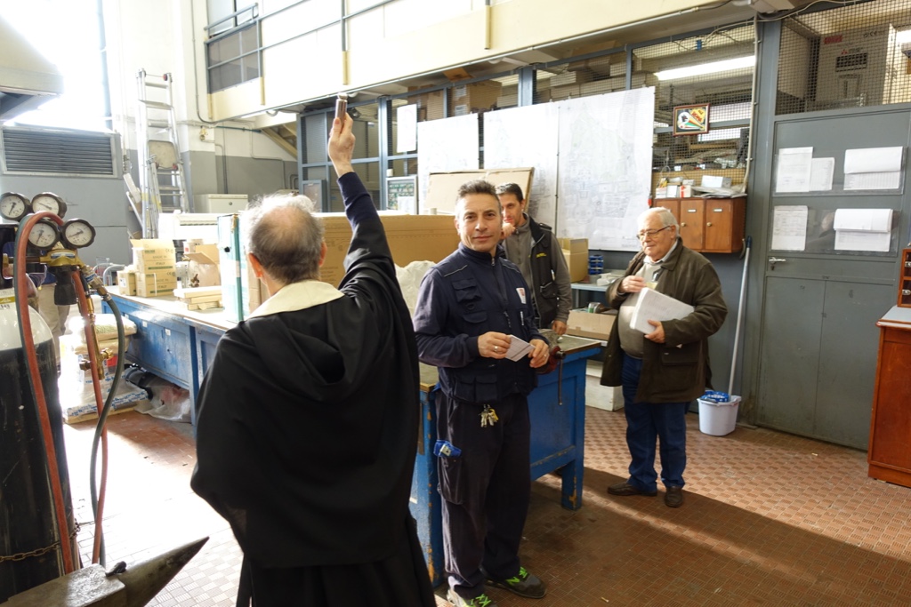 Venerdì 3 maggio, primo venerdì del mese, come di consueto, Padre Bruno Silvestrini, parroco e padre spirituale, ha incontrato e benedetto per la Pasqua gli operai e i loro locali.